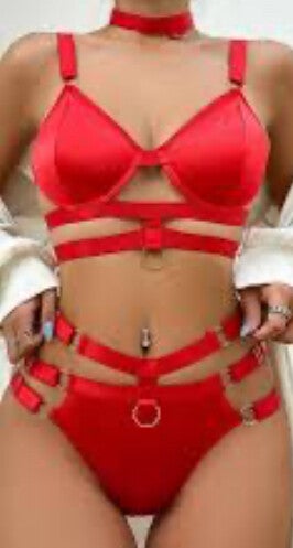 Beautiful elastic silk modern three strapped duo lingerie set with silver hooped unique design essential part to stand from the crowd and looking the part